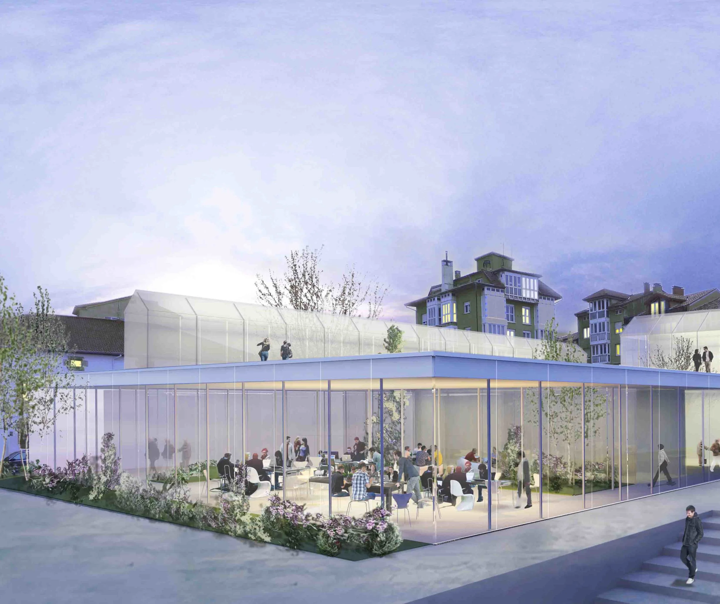 Hay una idea de democracia espacial inherente a esta propuesta para una “nueva plaza del mercado”: un edificio horizontal se acomoda bajo ella, es transparente y accesible para toda la ciudadanía, un paseo y un jardín invitan a acercarse a su puerta. En su interior cada función imaginable tiene su propio espacio y un espacio exterior compartido. Arriba, en la nueva plaza del mercado, un parque y un café. A la vista todo conforma un paisaje urbano.
